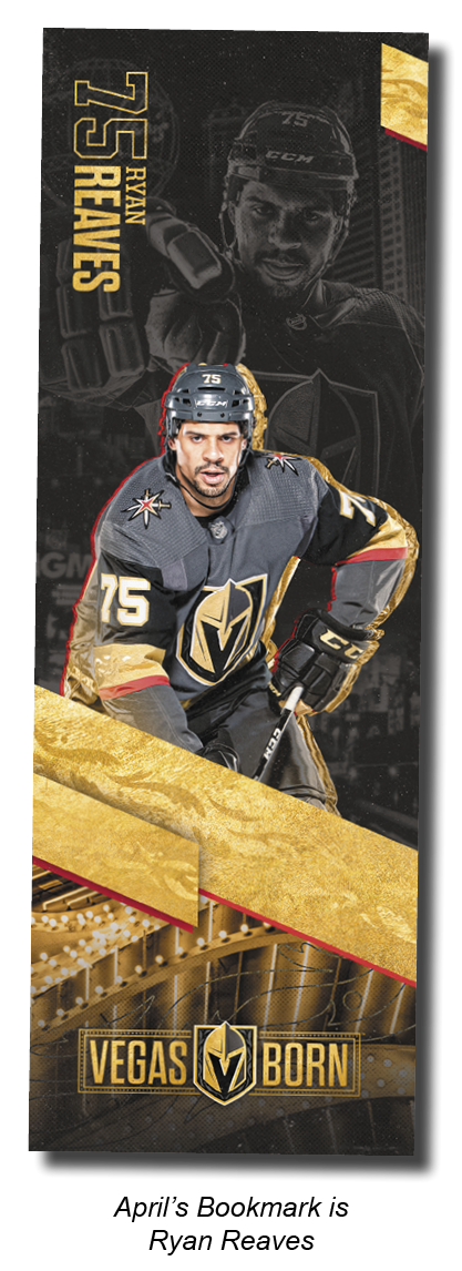 The start of a new month means a new Vegas Golden Knights free collectible bookmark to pick up at your neighborhood branch! The Library District continues its partnership in literacy with the Vegas Golden Knights 2021 collectible player bookmark series. There is a new spotlighted player each month, and April is Right Wing superstar Ryan Reaves.