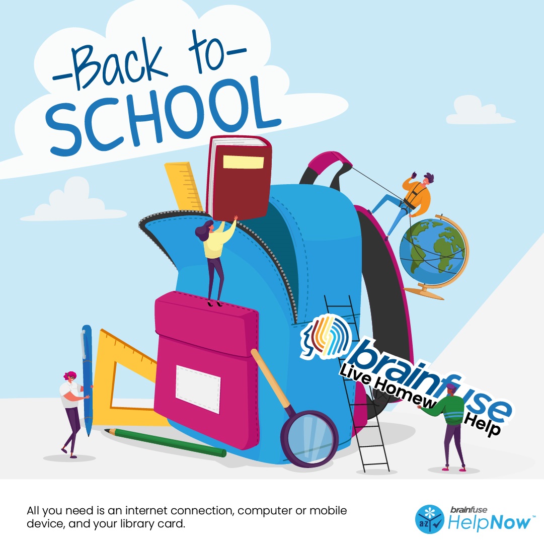 Student eResource: HelpNow by Brainfuse The new school year is right around the corner, and along with the school supplies they need to be successful, introduce your student to homework help available from the library. Encourage them to try our free eResource, Brainfuse HelpNow. Get homework help on any subject with an online tutor from 1 – 10 p.m. any day of the week. Spanish tutors are also available. Additional services include study resources and test prep, create and share flashcards, virtual study rooms and more.
