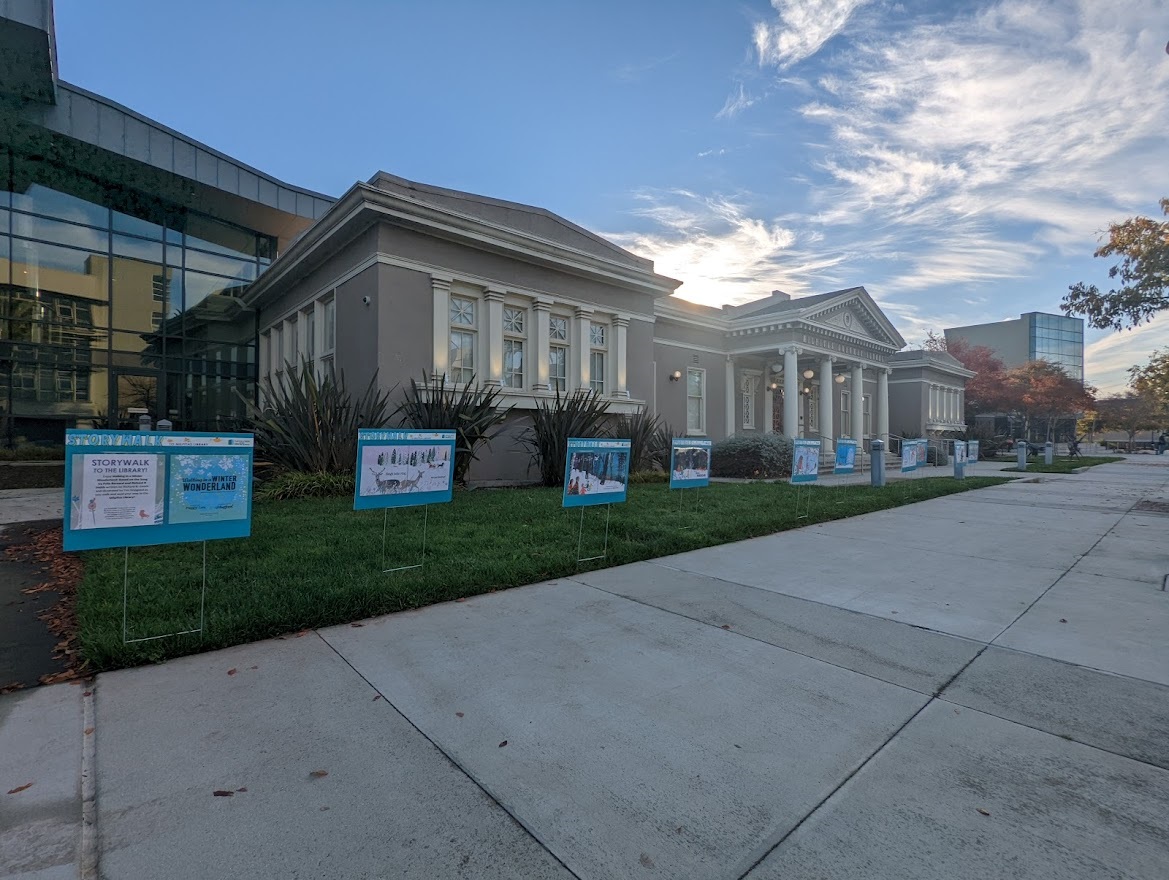 StoryWalk® at Milpitas Library We are happy to announce the StoryWalk® Project has expanded to the Milpitas Library. A StoryWalk® includes pages taken directly from a children's book, mounted and installed along an outdoor path. As you walk down the path, you are encouraged to read and follow the story along the way. The selected book for the StoryWalk® is Walking in a Winter Wonderland, a picture book that celebrates winter, using the lyrics of the song Winter Wonderland by Felix Bernard and Richard B. Smith. The StoryWalk® starts at the front of the Milpitas Grammar School and ends near the entrance of the library on Main Street. It will be on display until Monday, December 20. StoryWalk® was created by Anne Ferguson of Montpelier, VT and developed in collaboration with the Kellogg-Hubbard Library in Vermont.