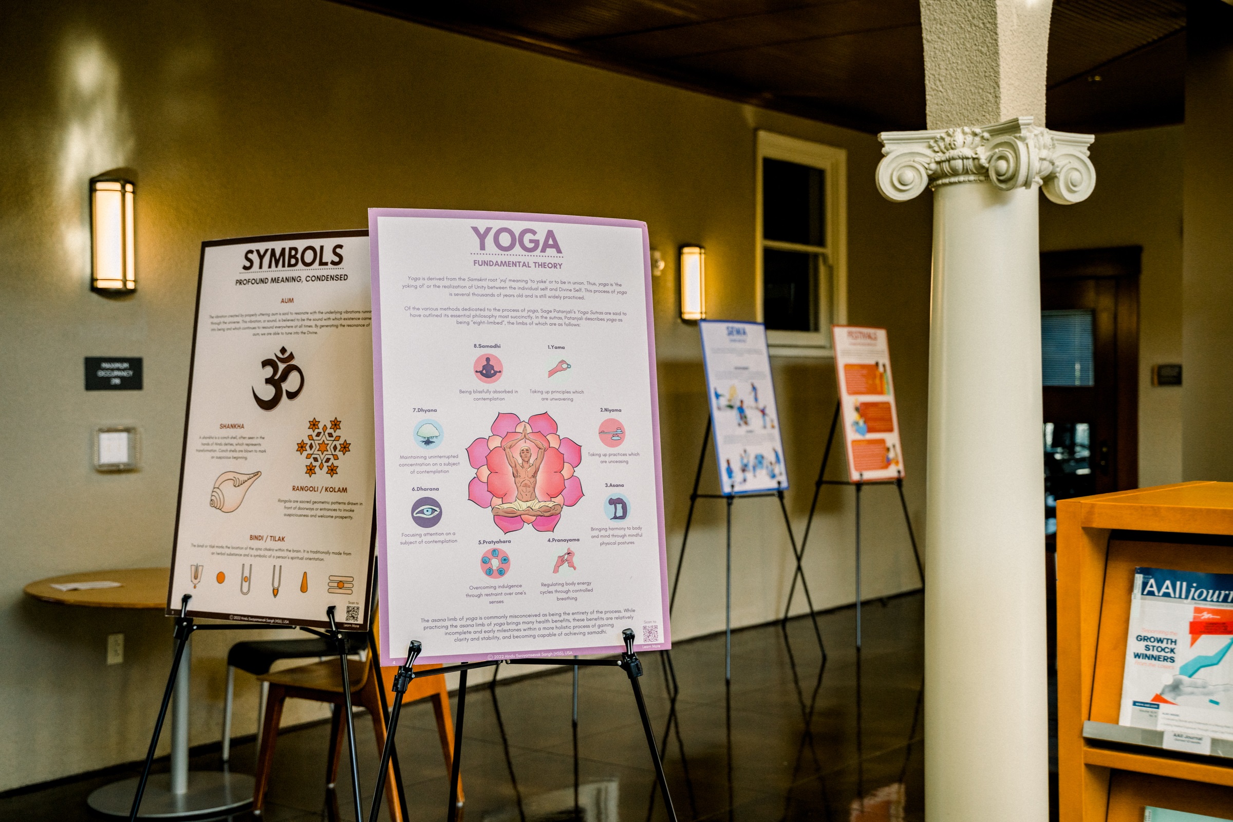 Darshana: A Glimpse into Hindu Civilization This exhibit features 24 posters that offer a colorful overview of Hinduism and India, including information about yoga, science, architecture, and mathematics. This exhibit will be on display in the library courtyard through Thursday, November 10. Join us for a special reception on Sunday, October 23 at 4 p.m. in the auditorium that will allow exploration of the exhibit's posters with speakers who can answer questions from guests on each poster.