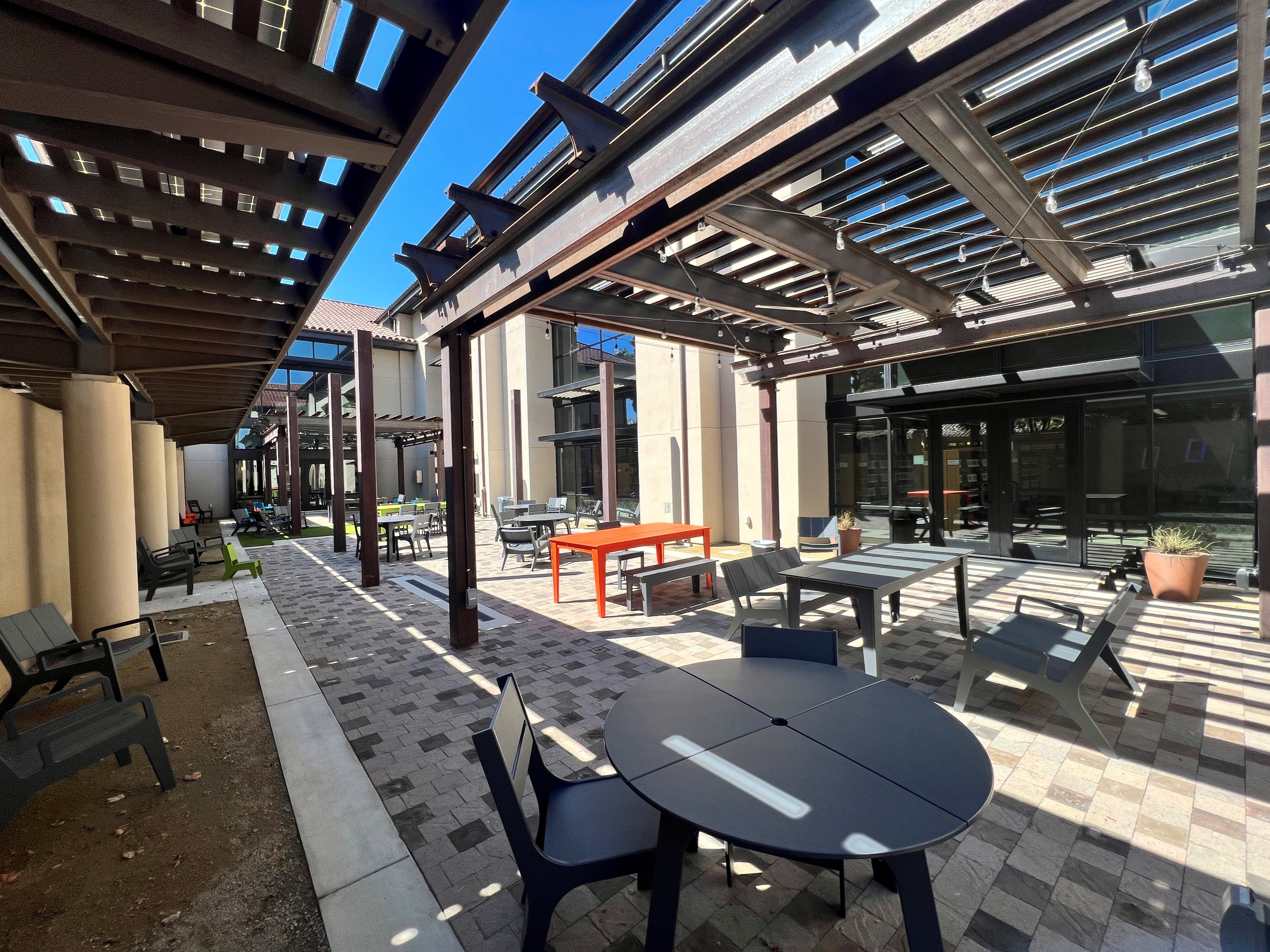 The Gilroy Library Patio Has a New Look! Gilroy Library is expanding outward! The library has enhanced its patio area adjacent to the lobby and children’s room. Check out the improved shade and lighting! The space provides seating for studying, reading, as well as relaxation alongside play and create areas. With a focus on experiential learning, the library aims to create a fun space for young children and their grownups focused on skill building with imaginative play, art, and motor skills development.