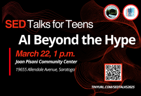 Silicon Valley Reads: Teen Program About Artificial Intelligence SED Talks for Teens is an annual speaker series event organized by the Saratoga Youth Commission and the Saratoga Library’s Teen Advisory Board. This year’s event will explore the question of AI’s potential beyond the hype. What are the implications and social benefits of AI, and how can it empower humanity to create technology for a better world? Join us on Saturday, March 22 at 1 p.m. at the Joan Pisani Community Center in Saratoga for in-person talks and discussions for teens and learn from industry professionals and leaders in the field. Activities, raffle prizes and snacks included! Our speakers are: • Sulman Choudhry, Head of Engineering of ChatGPT at OpenAI • Dr. Paul Tang, Professor at Stanford's Clinical Excellence Research Center • Dr. Michael Ke Zhang, Co-founder and Chief Instructor at AI Camp Please register for this event if you would like to receive reminders.
