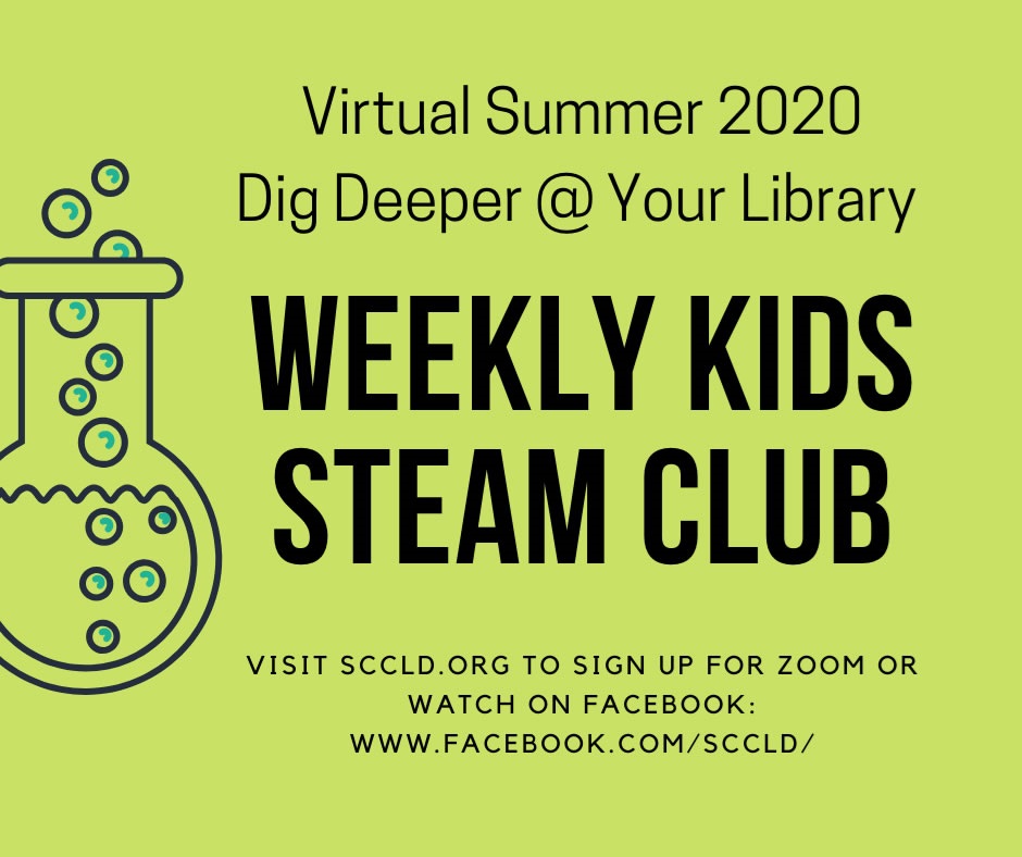 Summer Reading Spotlight on STEAMAs part of digging deeper, investigating and discovering, we are hosting weekly STEAM programs in June and July. In fact, The Tech Challenge will provide instruction for the first four weeks! Learn how to make safe fireworks and craft some yummy creations using chemistry in the kitchen. These events will be held on Facebook and though Zoom. If using Zoom, please register for the event online.