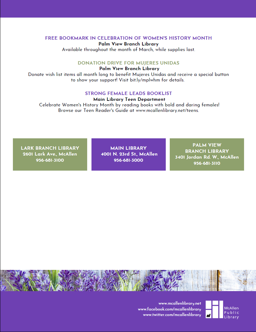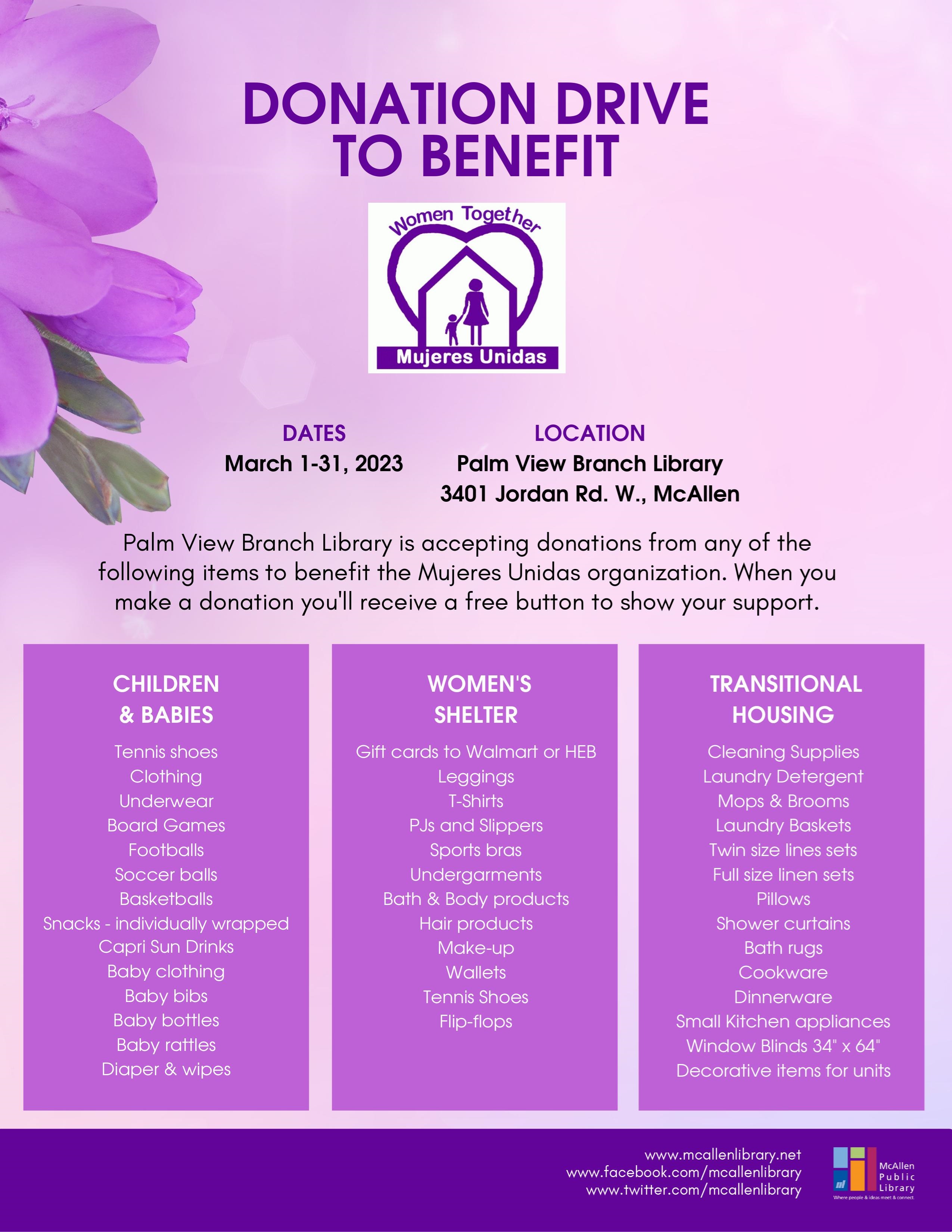 Adult Programs Program Highlight: Donation Drive to benefit the Mujeres Unidas Organization The Month of March at the Palm View Branch Library