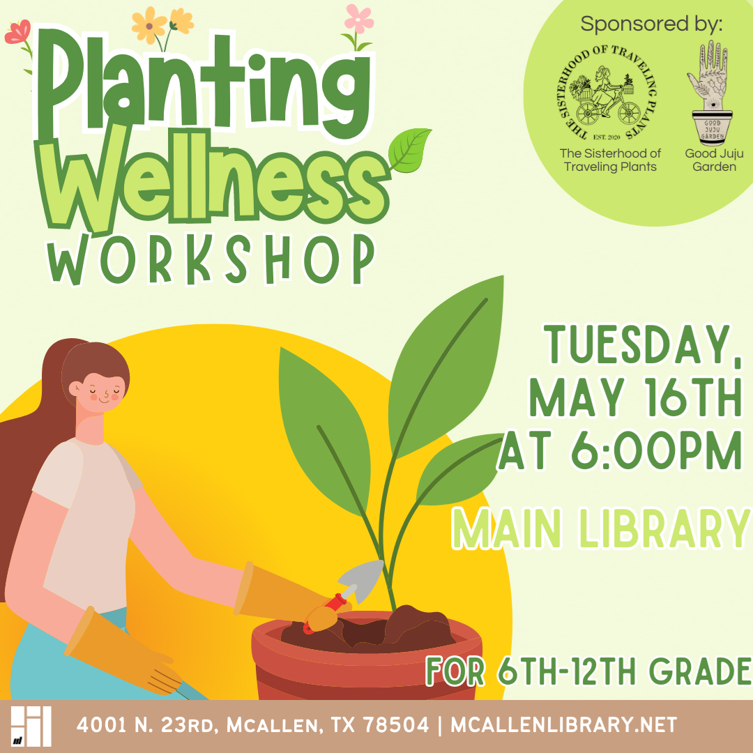 Teen Programs Program Highlights: Planting Wellness Workshop Join us for an afternoon with plants! We will be decorating pots and repotting plants while learning about mental health & wellness. Everyone gets to take home their own plant! While supplies last. Makerspace Station: Bobba Tea (Palm View Branch) May 16th at 6PM