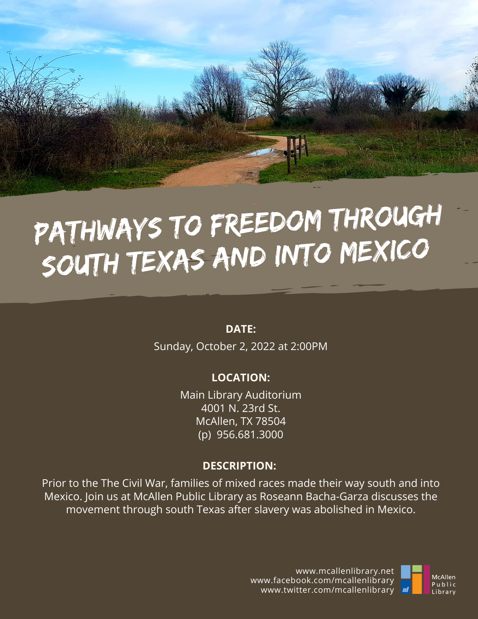 Adult Programs Program Highlights: Virtual Painting Class (Lark) Friday October 14th at 2 PM Painting kits for adults! Participants come to the library to pick up supplies the week of the program. We offer a self-paced video on Facebook.com/MPLAdults and Youtube.com/MPLAdults. Registration is required. For registration and to pick up a painting kit at the Lark Branch Library, please call (956) 681-3100