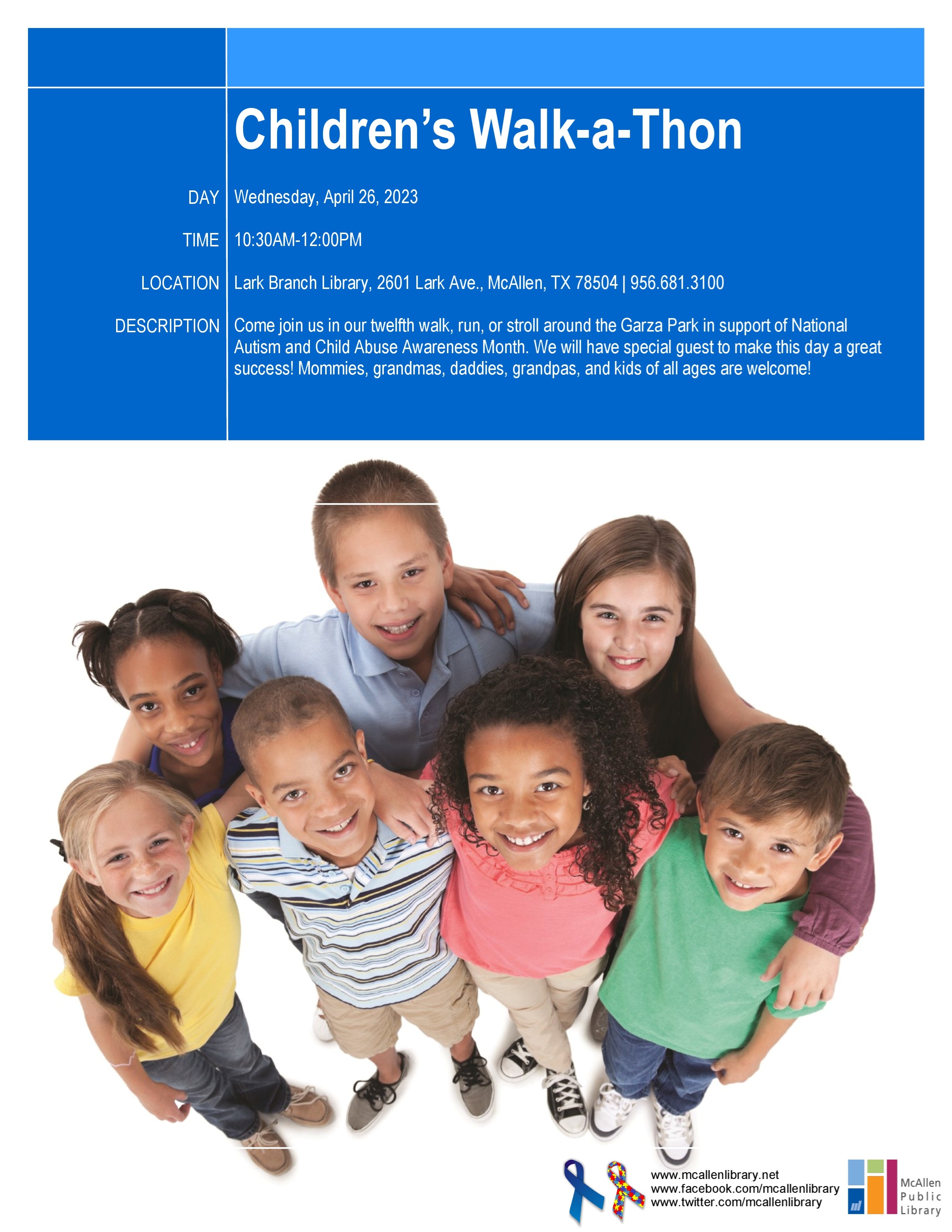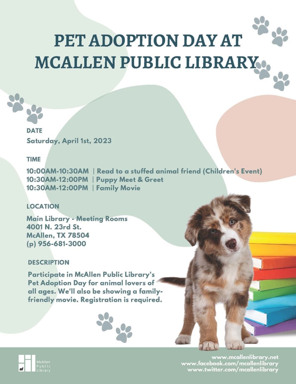 Children's Programs Baby Storytime Mondays at 1 PM Toddler Time Thursday at 10 AM Easter Fun April 2nd at 2 PM S.T.E.M. Sunday April 16th at 2 PM Crafternoon April 20th at 5 PM Saturday Storytime April 22 at 2 PM Bilingual Storytime April 27th at 5 PM Crafty Kids (Lark) Wednesdays at 6 PM Once Upon a Time (Lark) April 3rd ,4th, 5th, 10th , 11th, 12th, 17th, 18th, 19th, 20th, 24th, 25th, & 27th at 11 AM Coloring Day (Lark) April 3rd at 6 PM Kids Lego Club (Lark) April 24th at 6 PM Stay & Create (Palm View) Mondays & Wednesdays at 5 PM Bilingual Storytime: La Hora de los Cuentos (Palm View) Tuesdays at 11 AM Toddler Time (Palm View) Thursdays at 11 AM