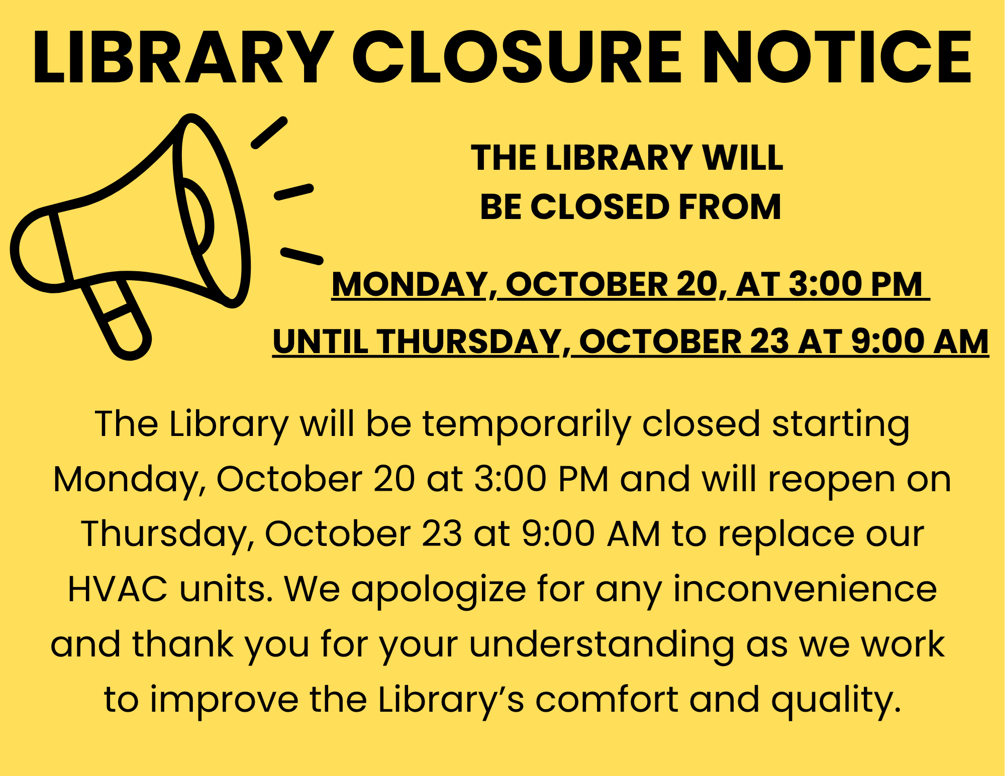 | Adult & Young Adult programs for the week of October 12, 2025: Registration is currently ongoing. Programs with a fee are non-refundable and must be registered in-person. |
