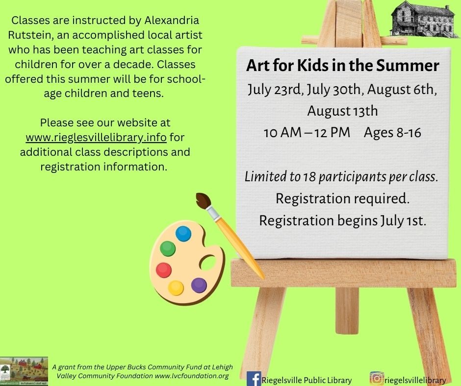 Summertime is a great time to visit some of our local attractions. We wanted to remind everyone that the library has museum passes to the following local museums: Allentown Art Museum; Mercer Museum & Fonthill Castle; Naval Air Station Wildwood Aviation Museum; Pennsbury Manor; Washington Crossing Historic Park; Buck’s County Children’s Museum. Passes may be checked out with an adult library card in good standing.