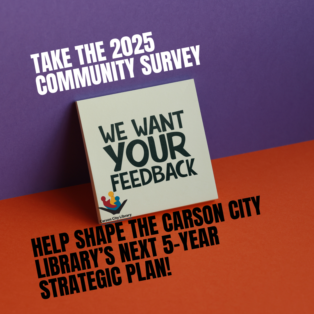 Help Shape the Future of the Carson City Library! We’re developing a new Strategic Plan—and we want your input! Take a few minutes to complete our community survey and share your thoughts on the library’s programs, services, and priorities for the future. Your feedback will help guide how we grow and serve Carson City in the years ahead.