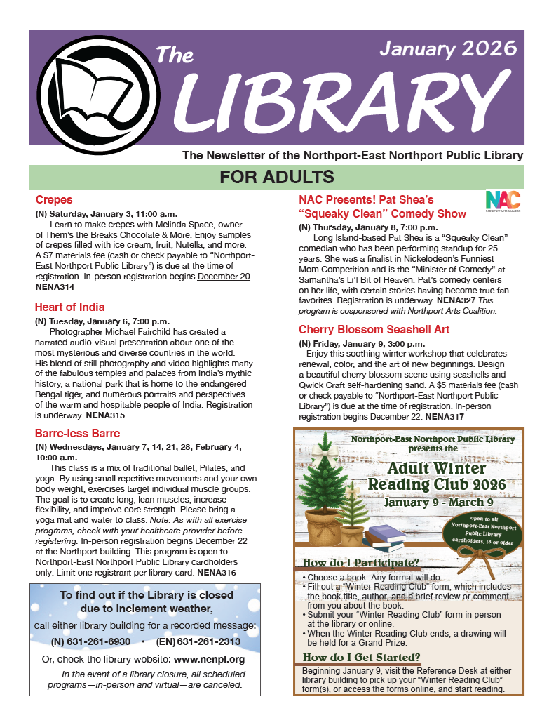 Open to all Northport-East Northport Public Library cardholders, 18 or older.