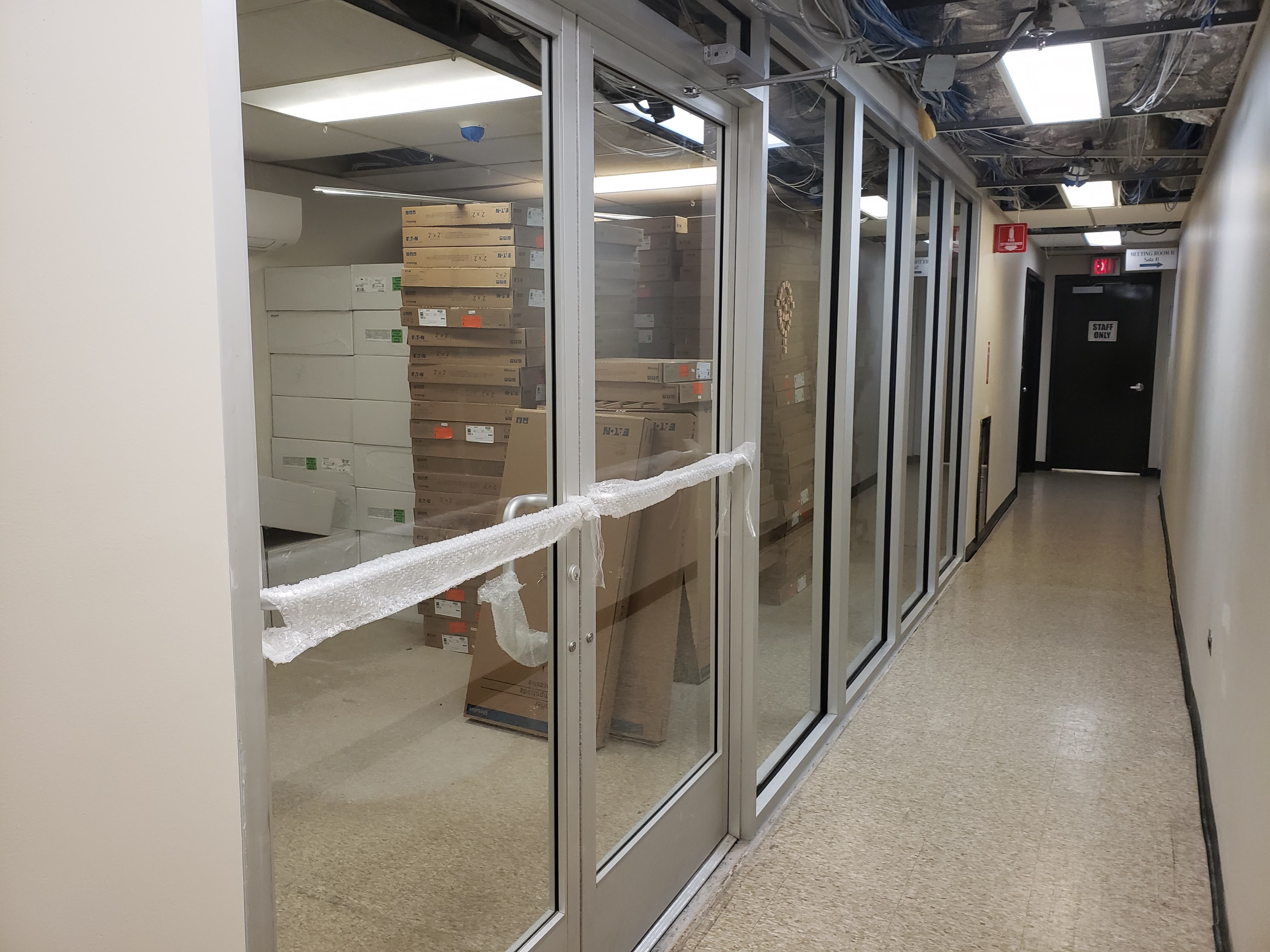 The future Makerspace room! It is currently storing tiles for an ongoing ceiling project.