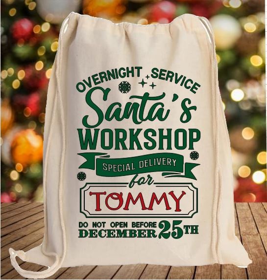 Personalized Santa Sacks Order your personalized Santa Sack today! Eight festive designs to choose from! Santa Sacks are $15, while supplies last