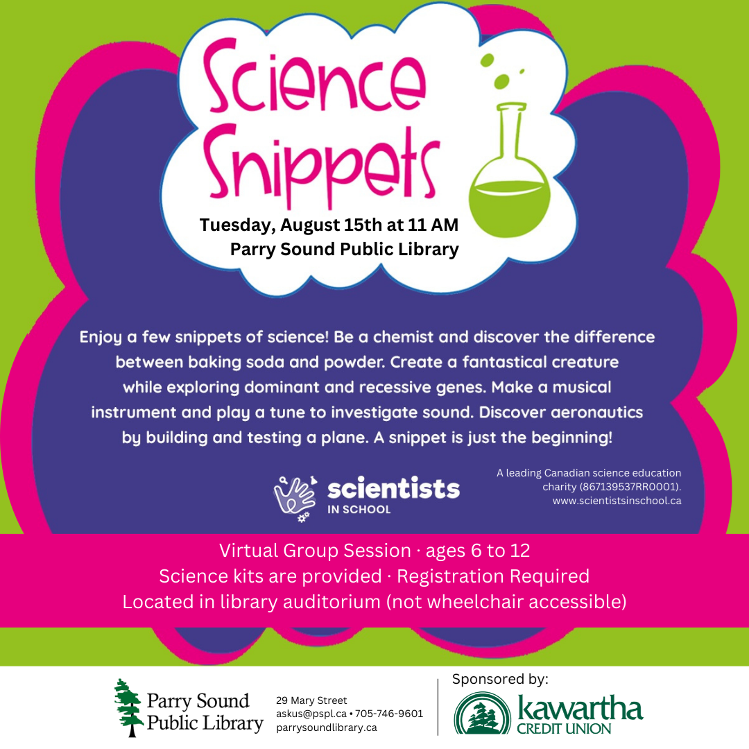 Storytime Wednesdays at 11 am (August 2nd & 9th) Join us in the children's department at Parry Sound Public Library for a storytime and craft. Drop-in, no registration required.