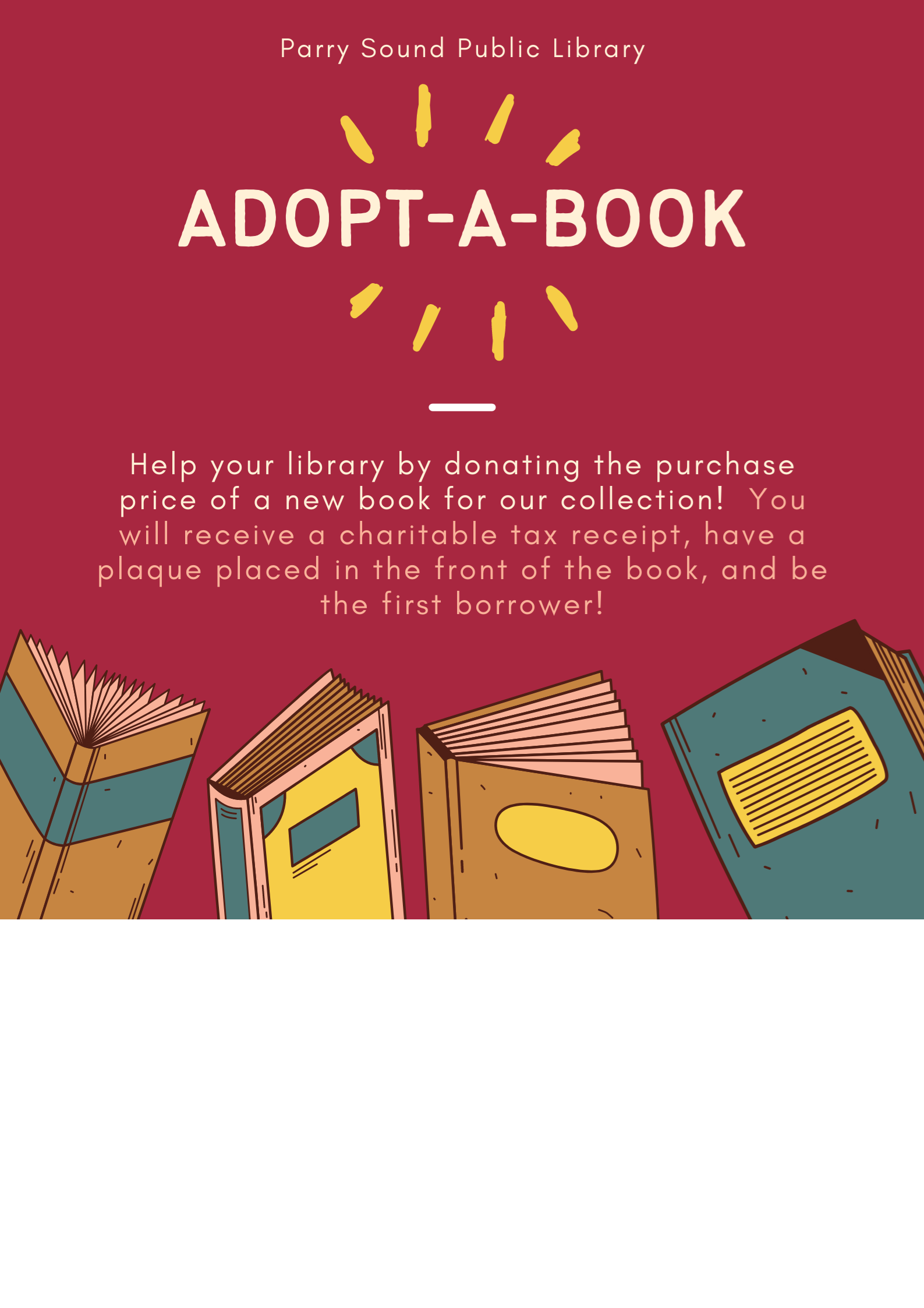Adopt-a-Book at PSPL! Adopt-a-book is a fun way to sponsor a book that the library may not be able to purchase without your help! It's a fantastic way to give back to your community, and get to read a shiny new book! It's a win-win!