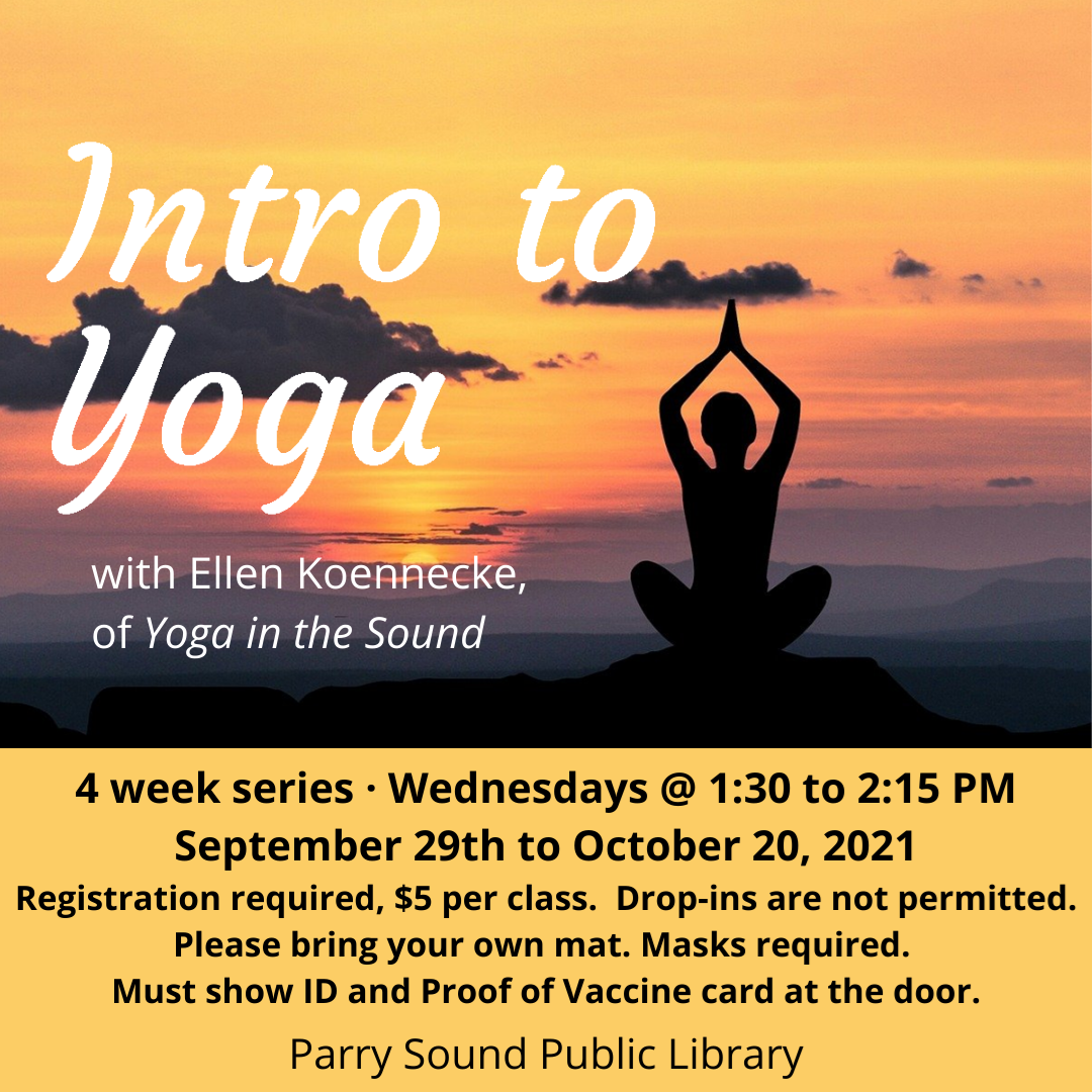 Intro to Yoga Wednesdays @ 1:30 to 2:15 PMJoin us for light yoga sessions with certified Yoga Instructor Ellen Koennecke, of Yoga in the Sound.Drop-in, by donation. Masks optional. Located in the library auditorium. (not accessible)