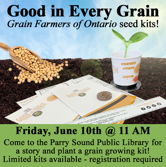 Good in Every Grain Kits Friday, June 10th @ 11 am (PD Day) Looking for a fun kids activity for the next PD Day? Come to the library on June 10th at 11 am for a story and to plant a grain growing kit! Kit comes with fun learning resources to take home. Limited kits available - registration required.