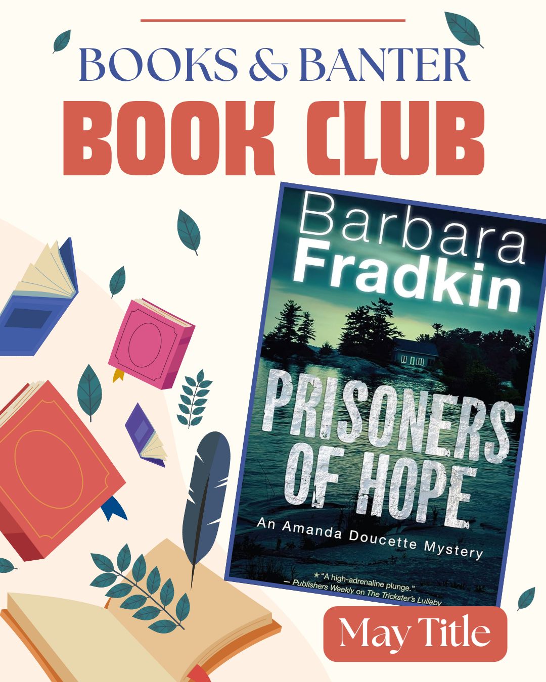 Books and Banter Book Club Last Thursday of the Month at 6 PM Let's read together in 2025! Program located in the library auditorium* Titles available at Parry Sound Public Library or on Libby. Registration is full May title is "Prisoners of Hope" by Barbara Fradkin