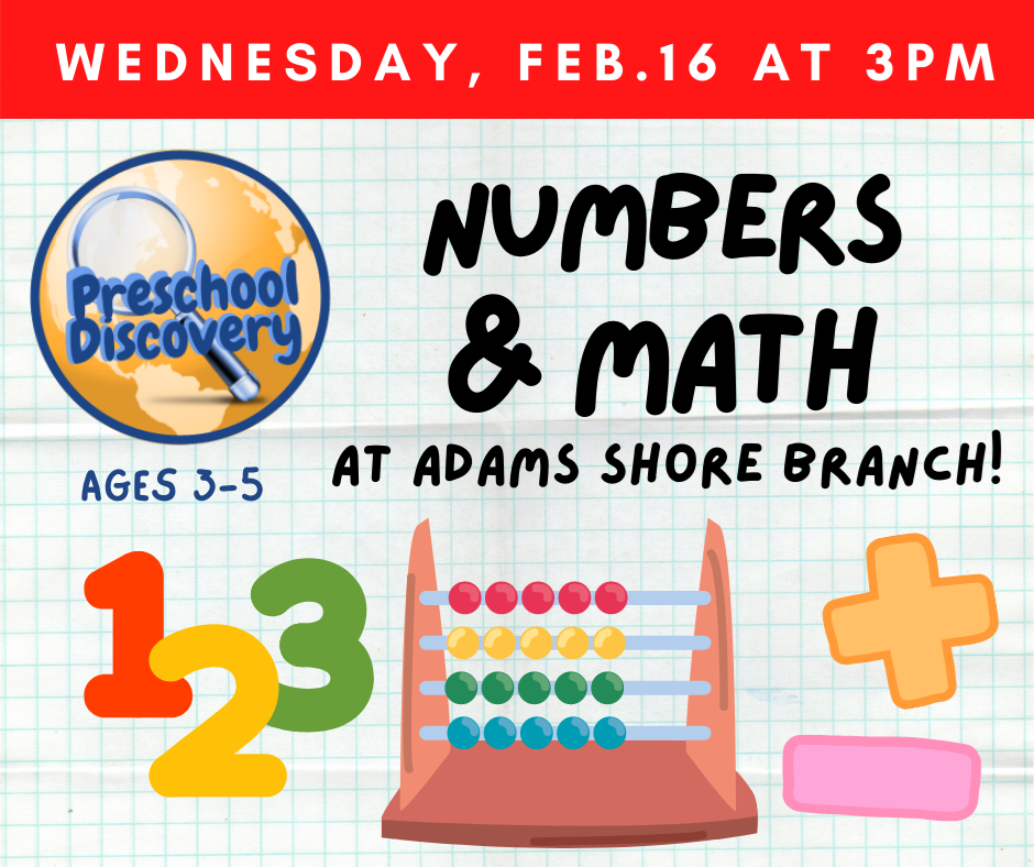 Preschool Discovery: Math and Numbers This month we're exploring the world of numbers and math. We'll be counting, matching, building, and doing simple math with fun activities! |