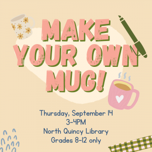 3 - 4 PM North Quincy Library For teens in grades 8-12 only No Registration Required