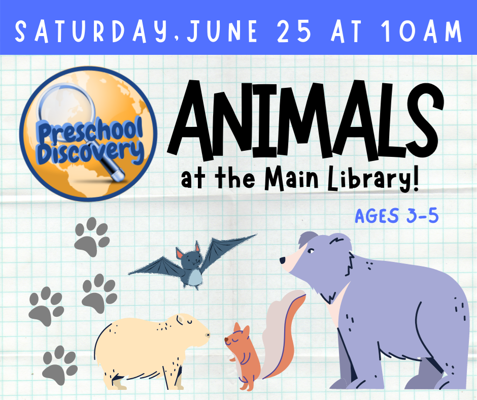 Preschool Discovery: Animals This month we'll be learning about animals! Look at paw prints, sort some animals, and discover how animals hide in plain sight. |