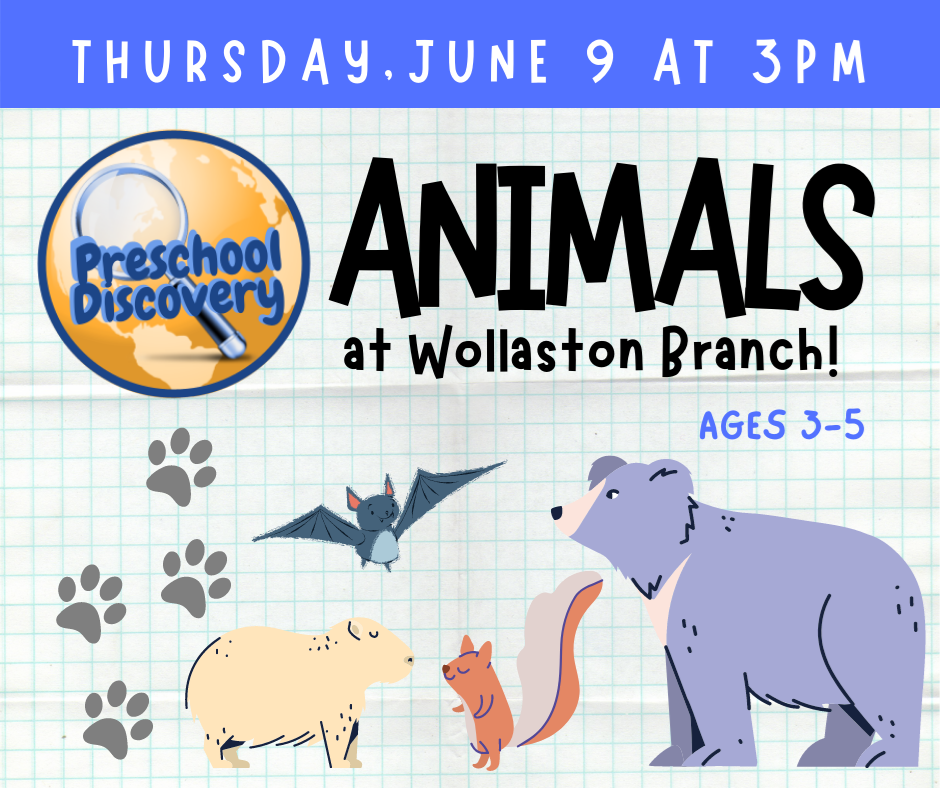 Thursday, June 9 3:00 - 4:00 p.m. Wollaston Branch