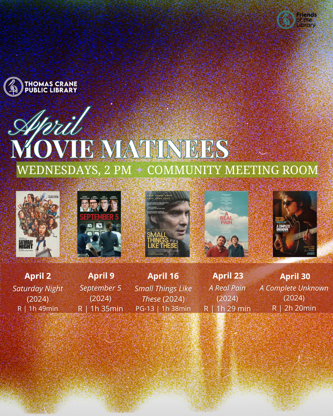 Friday, April 4 2 - 4 PM Rated: G | Runtime: 1h 17min