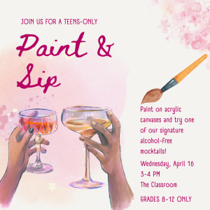Wednesday, April 16 3 - 4 PM Main Library No Registration Required For teens in grades 8 - 12 only