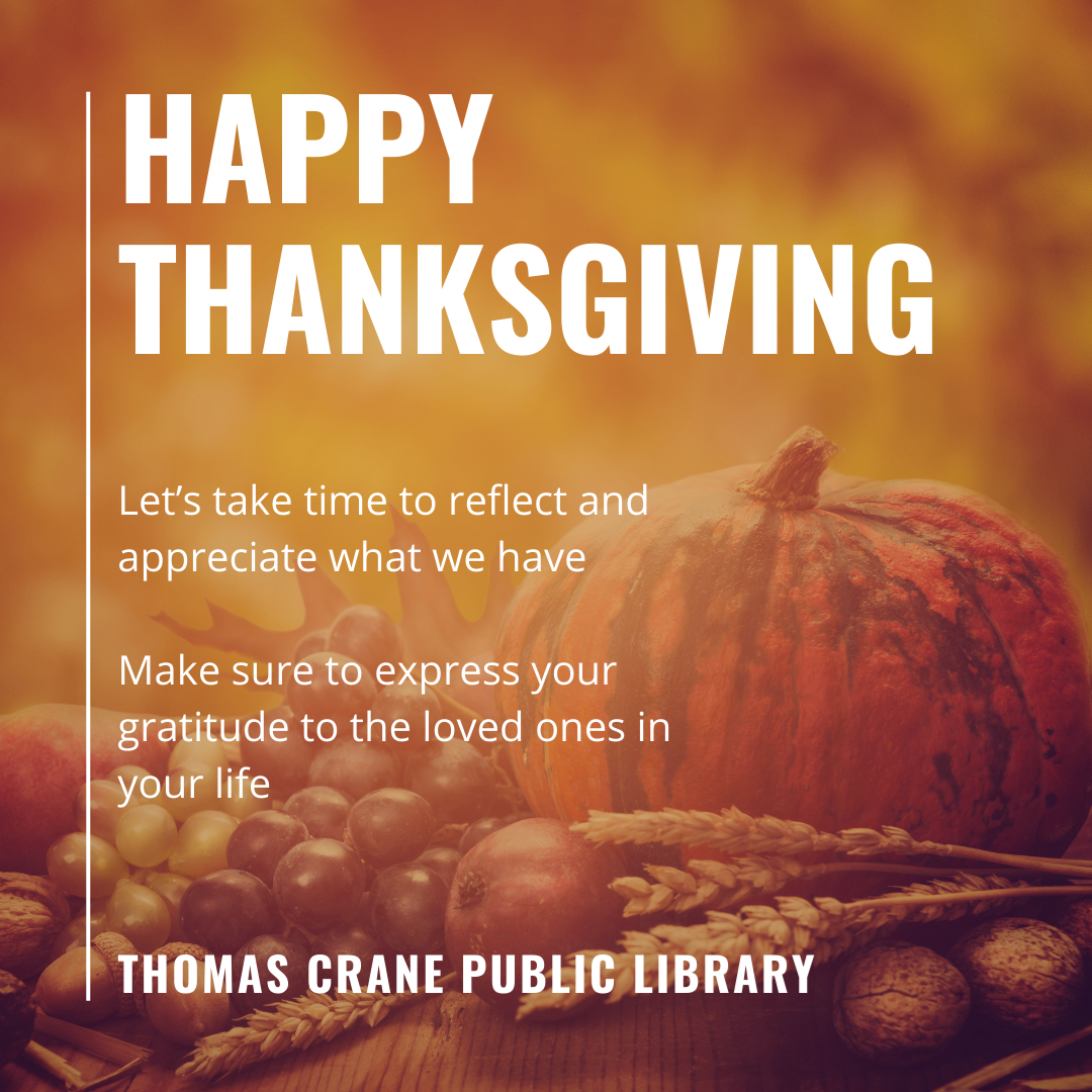 Tuesday, Nov 5 10 - 11 AM Ages 3+ years Adams Shore Library  Thursday, Nov 21 10 AM - 4 PM Ages 2+ years North Quincy Library