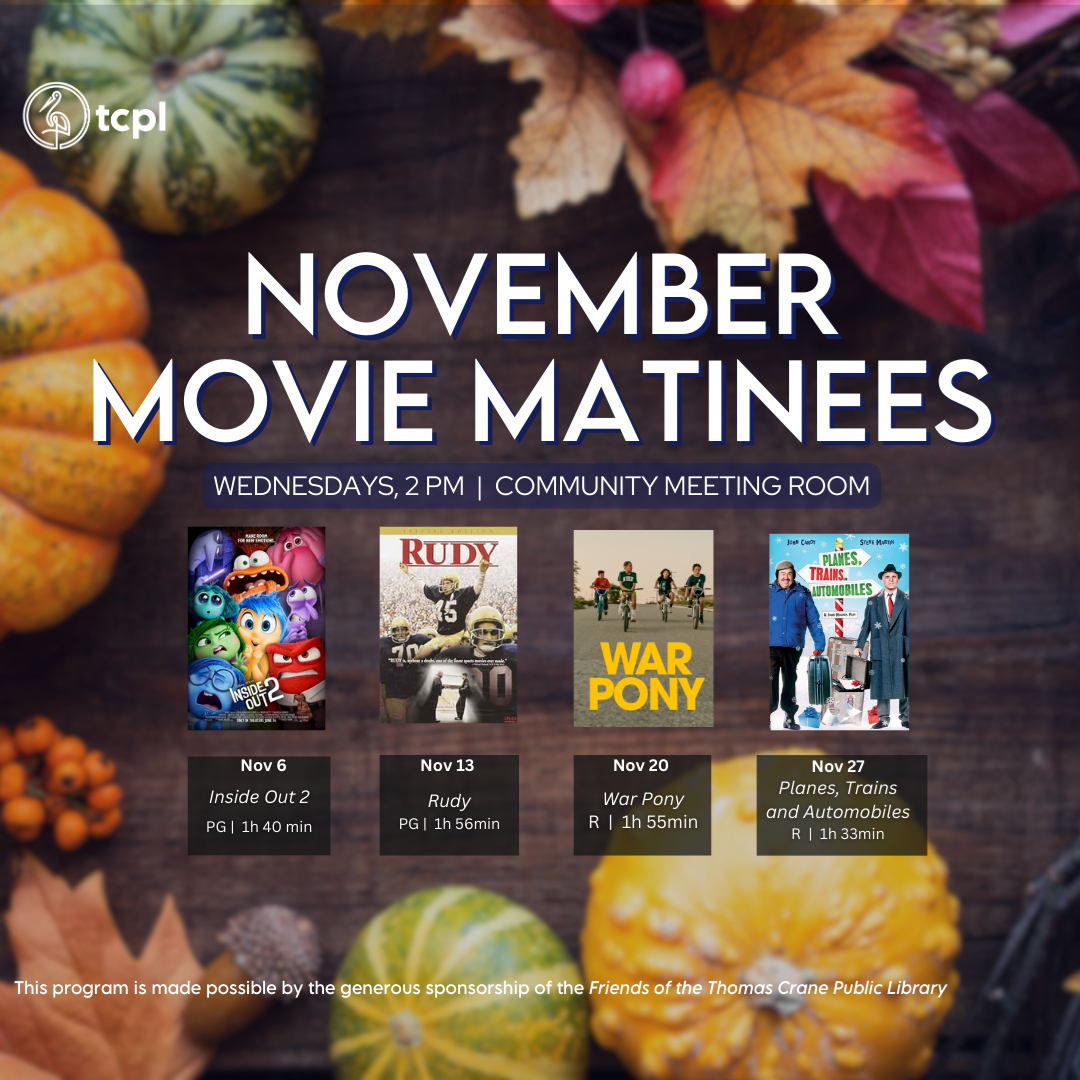 Movie @ Adams Shore Thursday, Nov 21 | 2 - 4 PM Rated: PG | Runtime: 1h 53min