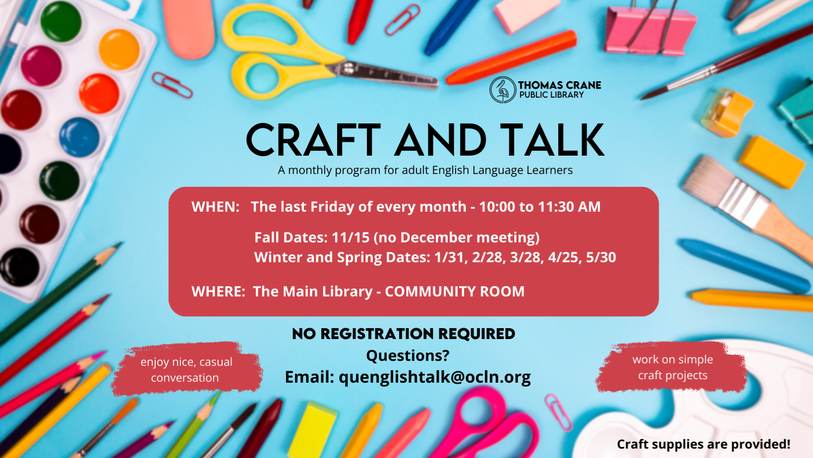 Teen Advisory Board 3:30 - 4:30 PM Main Library 3 - 4 PM North Quincy Library Contact quteen@ocln.org with questions.