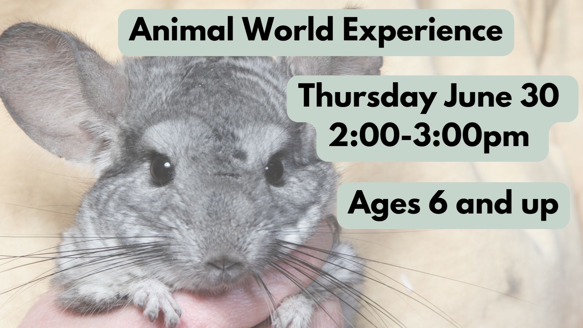 Animal World Experience Thursday June 30 2:00-3:00pm Ages 6 and up Meeting Room Matt Gabriel will bring an assortment of live animals with explanations of its habits and lifestyle. Registration is required. Open to ages 6 and up and their caregivers. Funded by the Friends of the Norwell Public Library