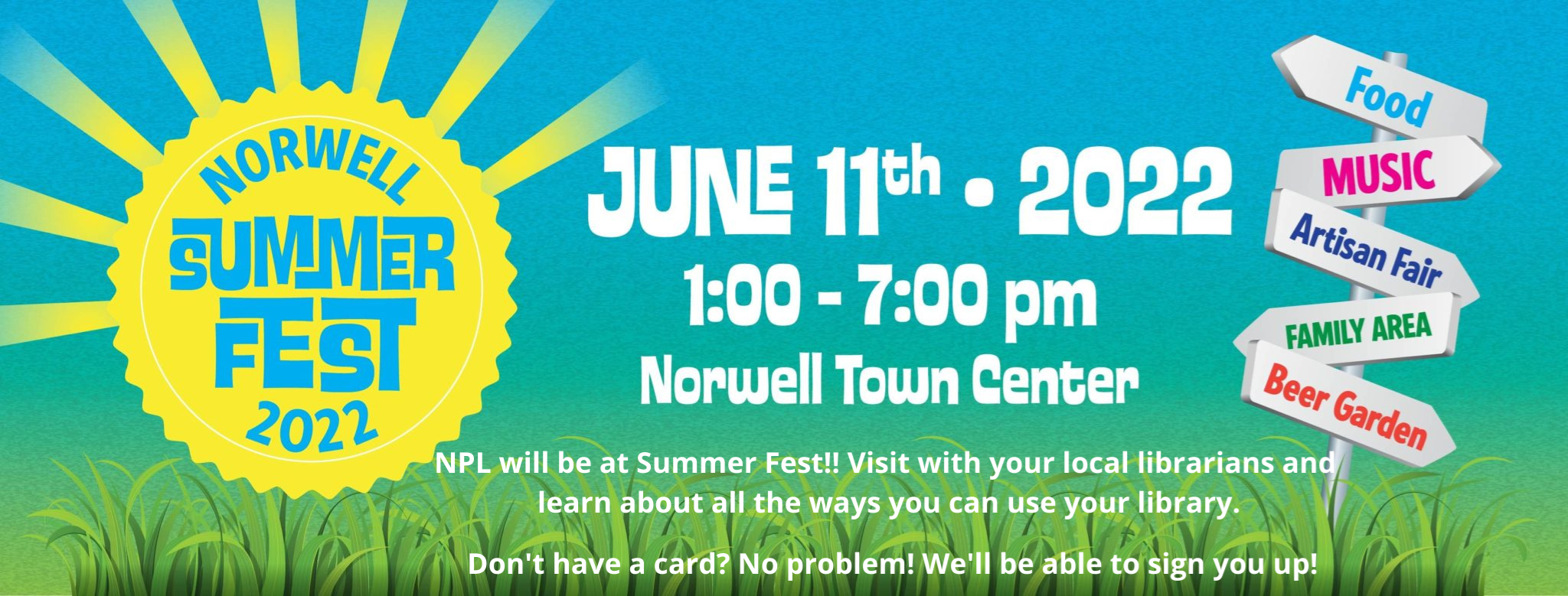 Summer Reading June-August 13 All ages including adults are welcome to participate in our summer reading program for a chance to win prizes from the Friends of the Norwell Public Library.