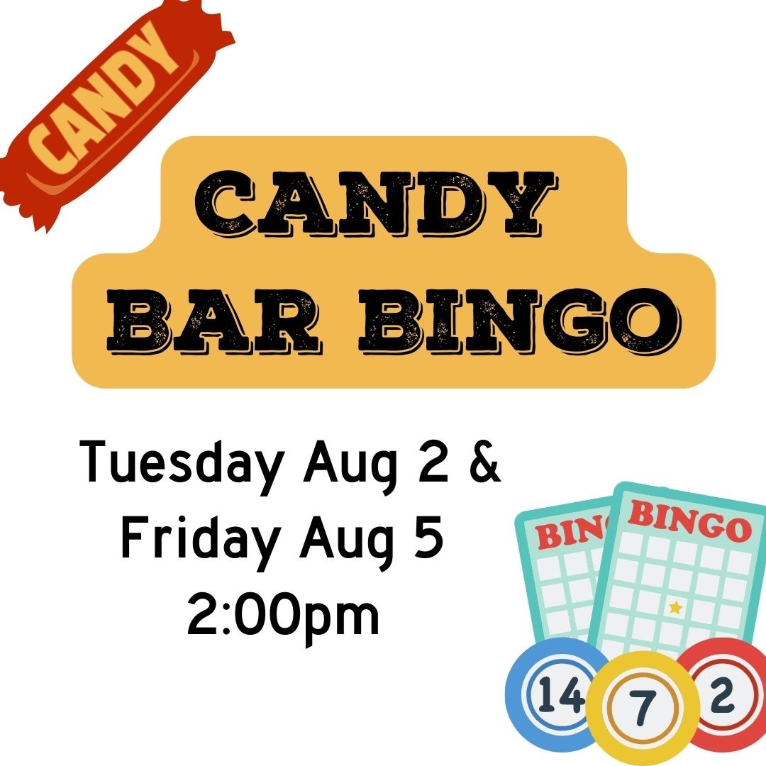 Candy Bar Bingo Tuesday August 2 & Friday August 5 2:00-3:00pm All Ages Meeting Room Play Bingo for a chance to win a candy bar. No registration required. Funded by the Friends of the Norwell Public Library