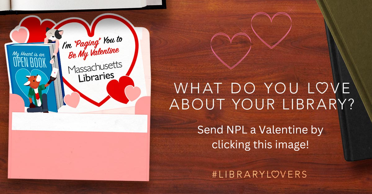 Tuesday, February 14 12:00pm - 5:00pm | Supplies will be available to make a valentine. No instruction provided, while supplies last. No registration required. |