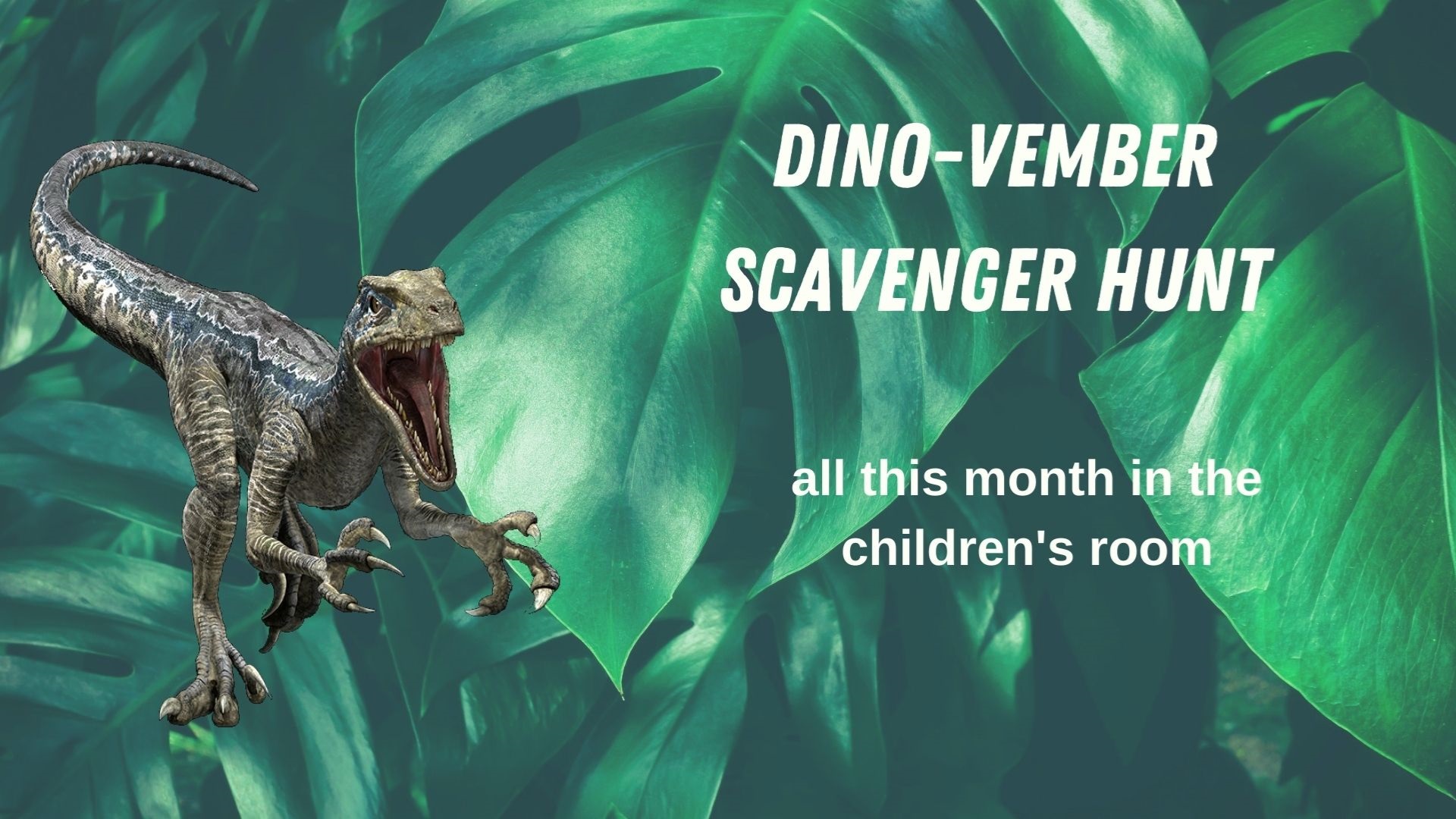 Dino-vember Scavenger Hunt All month long Children's Room Find prehistoric creatures hidden all around the children's room. No registration required.