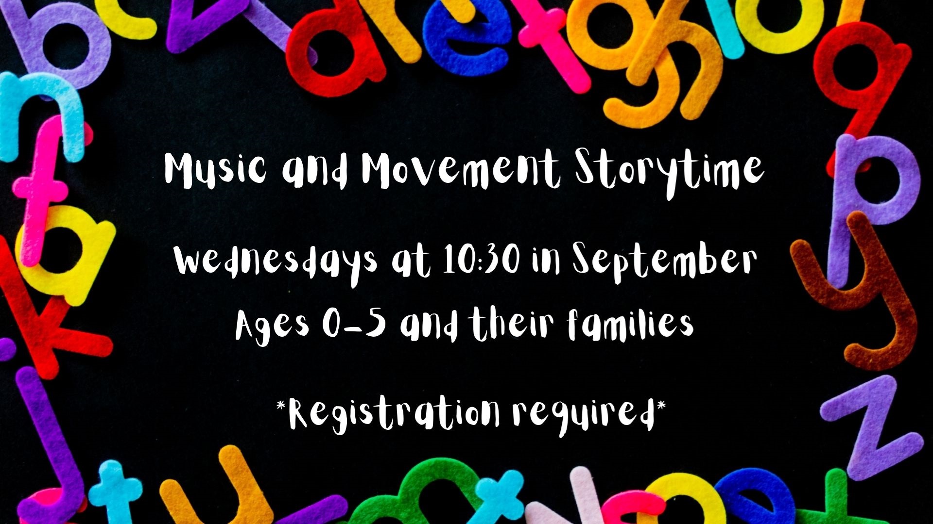 Music and Movement with Jessica Wednesdays November 3, 10, & 17 10:30-11am Staff Parking Lot A musical filled storytime for ages 0-5 featuring stories, songs and movement with Jessica. *We are hosting this OUTSIDE in the staff parking lot. Please bring a chair or blanket* Registration is required 2 weeks prior to each session for weather updates. Click here.