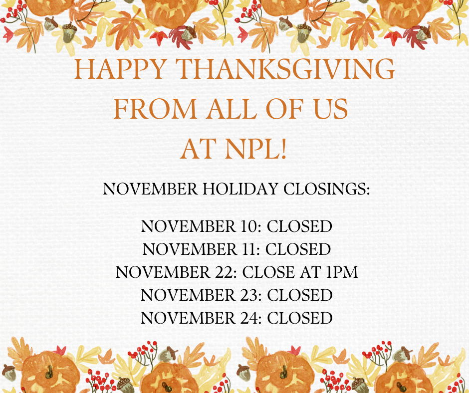 | Monday, November 20 5:30 - 6:30pm | This month we will be reading