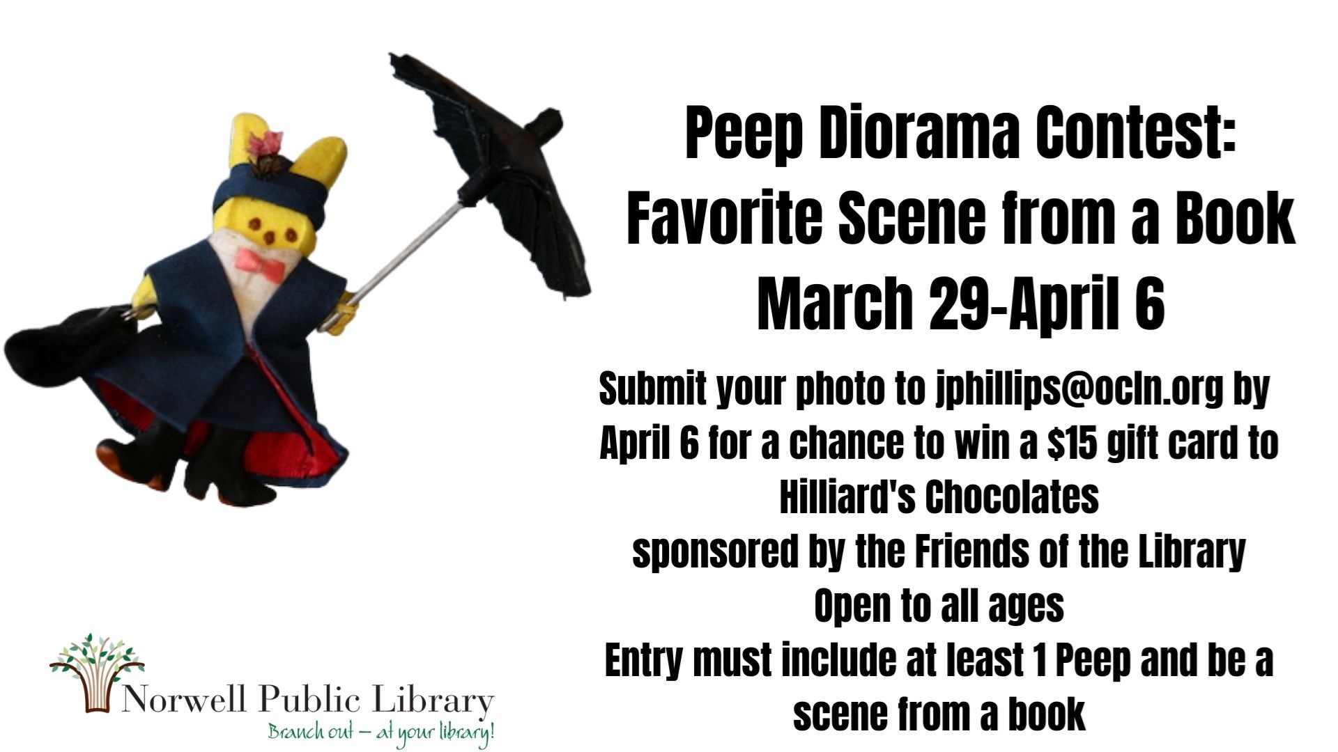 Homebound? We Deliver! Books to Go is available for Norwell residents who are unable to come to the library. To arrange for a contact-free delivery, contact adult services librarian Diane Rodriguez at 781-659-2015 X114 or drodriguez@ocln.org.