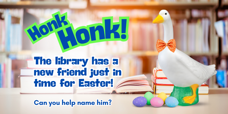 We welcome the newest addition to our Library -- our Goose! We have a contest underway to help name him; stop by to add your suggestion! Keep an eye out for the May 14-31 issue to find out the winning name!