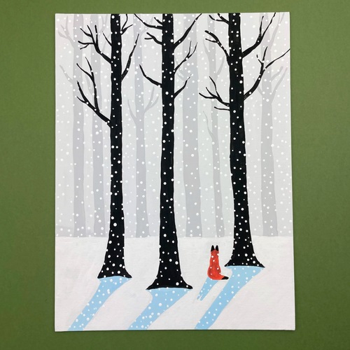 Winter Fox Paint Night Monday, January 12 at 6:00 pm For teens (13+) AND adults!! In this relaxing follow-along painting program, you'll create a peaceful winter forest scene featuring soft gray trees in the distance, bold black silhouettes in the foreground, with gentle snow falling. A small fox adds a touch of warmth and charm to the composition. This program offers a calm, creative escape into the beauty of a snowy woodland.