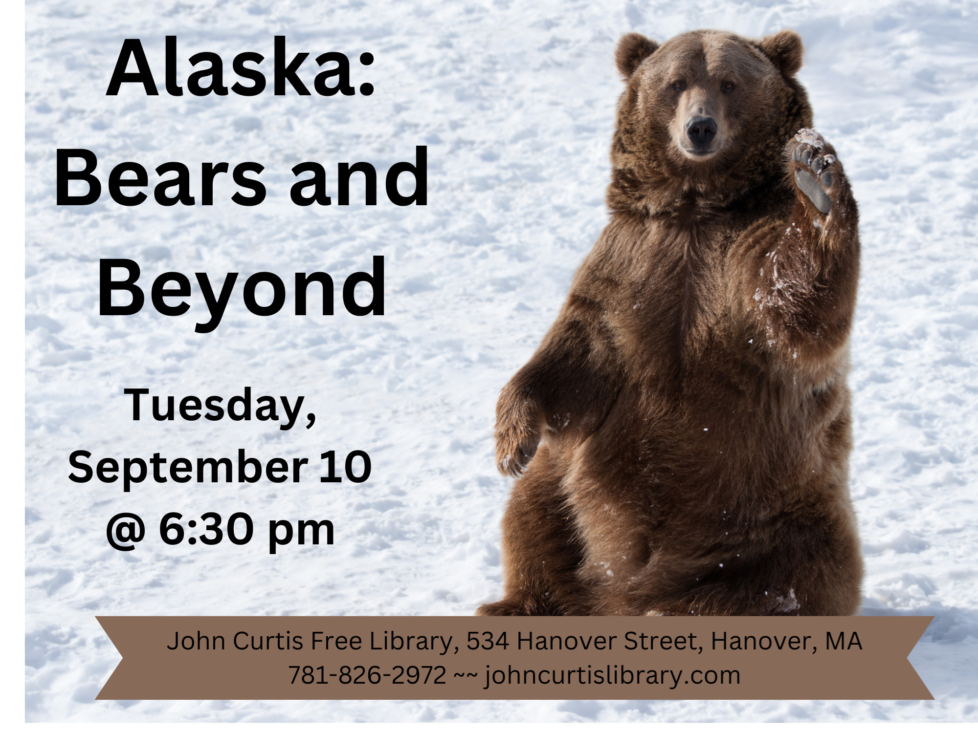 Alaska: Bears and Beyond Tuesday, September 10 at 6:30 pm Joy Marzolf shares her travel adventures with us!! Alaska is often regarded as a last frontier and one of the last places to see numerous large wildlife. Join us as we tour parts of this diverse state now experiencing increasing change in the modern world.
