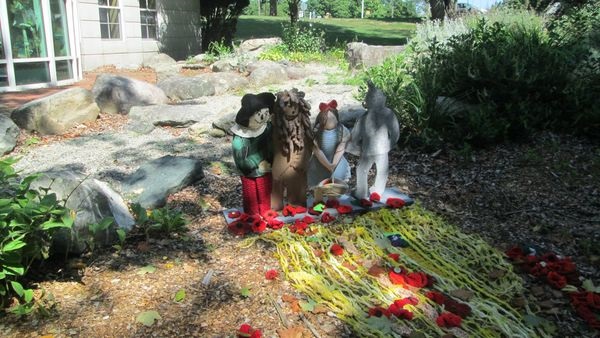 Outdoor Art Installation: Wizard of Oz! Check out our Wizard of Oz outdoor art installation on the grounds by the children's garden. It was crafted by members of the Plymouth Antiquarian Society, was previously on display near the Plymouth waterfront. It has now been graciously donated to our library. Ask at the children's room desk for a poppy to add to the creation!