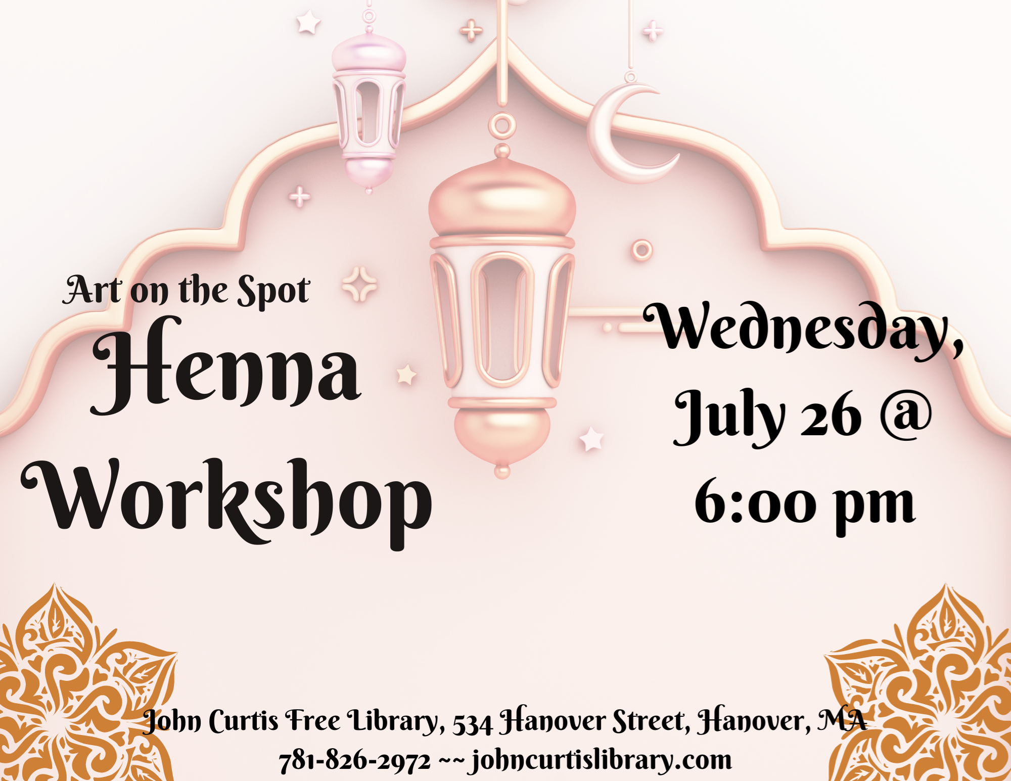 IN PERSON: Henna Workshop Wednesday, July 26 @ 6:00 pm