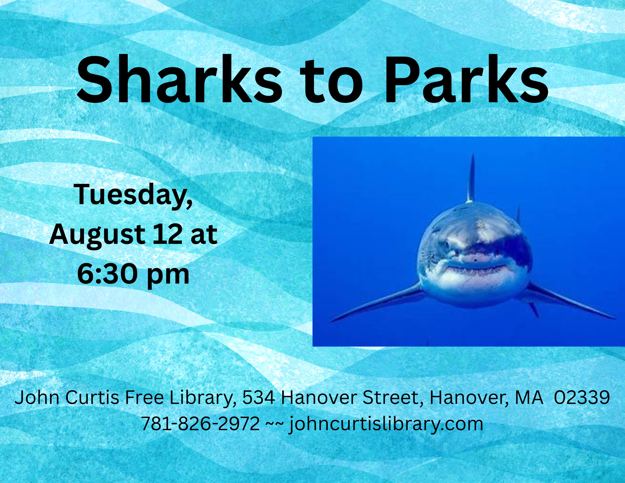 IN PERSON: Sharks to Parks Tuesday, August 12 at 6:30 pm "Sharks To Parks" begins with a presentation on predator/prey relationships using our mounted 7 1/2 foot long gold hammerhead shark named Bruce (yes, a real shark we caught fishing off of Florida 47 years ago). We then segue into a photography-based presentation showing all of the animals, both on land and underwater, that live in and around the parks of Hanover including White tail deer, coyote, red fox, groundhog, chipmunk, cottontail rabbit, gray squirrel, etc. Underwater photos show Large and Smallmouth bass, pumpkinseed, bluegill, chain pickerel, yellow perch, River Herring, American Shad, etc. Robert Michelson of Braintree, MA has been a professional photographer/videographer and owner of Photography By Michelson, Inc. since 1974. In addition to his photographic background, Bob became a certified SCUBA diver in 1979. In 1999 he became certified as a National Oceanic and Atmospheric Administration (NOAA) Science Diver. We hope you come and meet Bruce!