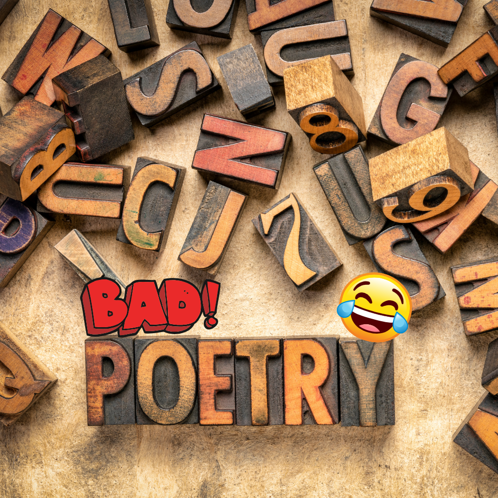 Bad Poetry Evening Wednesday, April 22, 6:30-8 p.m. Tabb Library Meeting Room After a brief overview of basic poetic forms, attendees will be given a prompt and a time limit to write their best (worst) poem. Sharing and hilarity will then commence! For Adults and Teens Accompanied by an adult looking to be creative and laugh. Poetry experience not required. Registration is strongly recommended as space is limited.