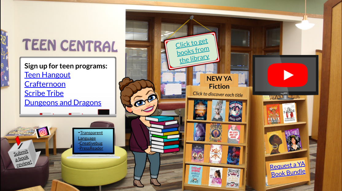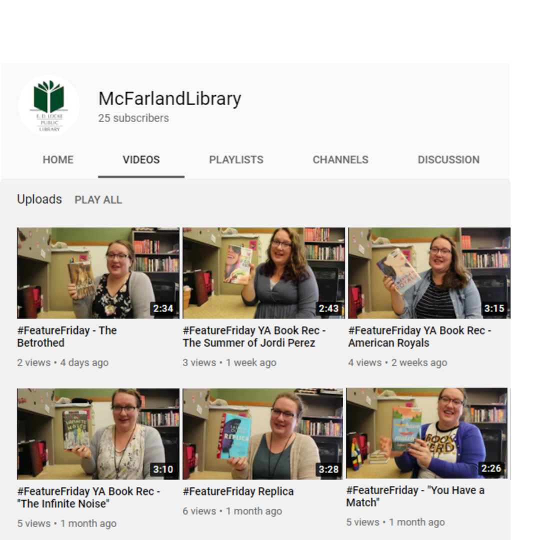 Go to the library YouTube page to see many fun videos, including the playlist YA #Feature Friday. Abby, the teen librarian, posts a new video every Friday that highlights a Young Adult novel.
