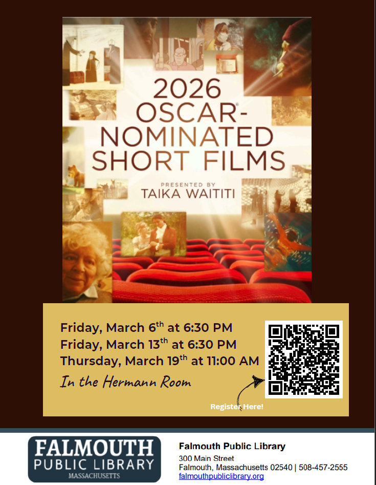Oscar Nominated Shorts - Animated Friday, March 13th, 6:30pm-8pm Hermann Meeting RoomPlease note that this event takes places after library hours. The Falmouth Library proudly presents SHORTS release of the 2026 Oscar Nominated Short Films! Tonight's offering will be Animation films.