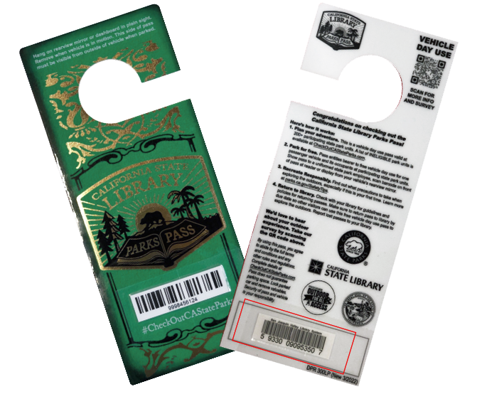 Terms and conditions set by the California State Parks and California State Library, with the exception of guidelines or policies for returning passes. Check with your library for guidelines and policies for returning passes. Report lost passes to your library. By using this pass, you agree to abide by the full terms and conditions and any other rules and regulations. Complete details at CheckOutCAStateParks.com Pass does not guarantee parking space. Lock parked car and remove valuables. Security of pass and vehicle is your responsibility.