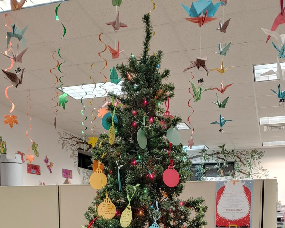 | Alice Baker Memorial Library in Eagle has partnered with the Eagle Community Organization to host a holiday Giving Tree and collect donated gift items. It is decorated with tags for items needed by local families. The collection runs through December 15. |